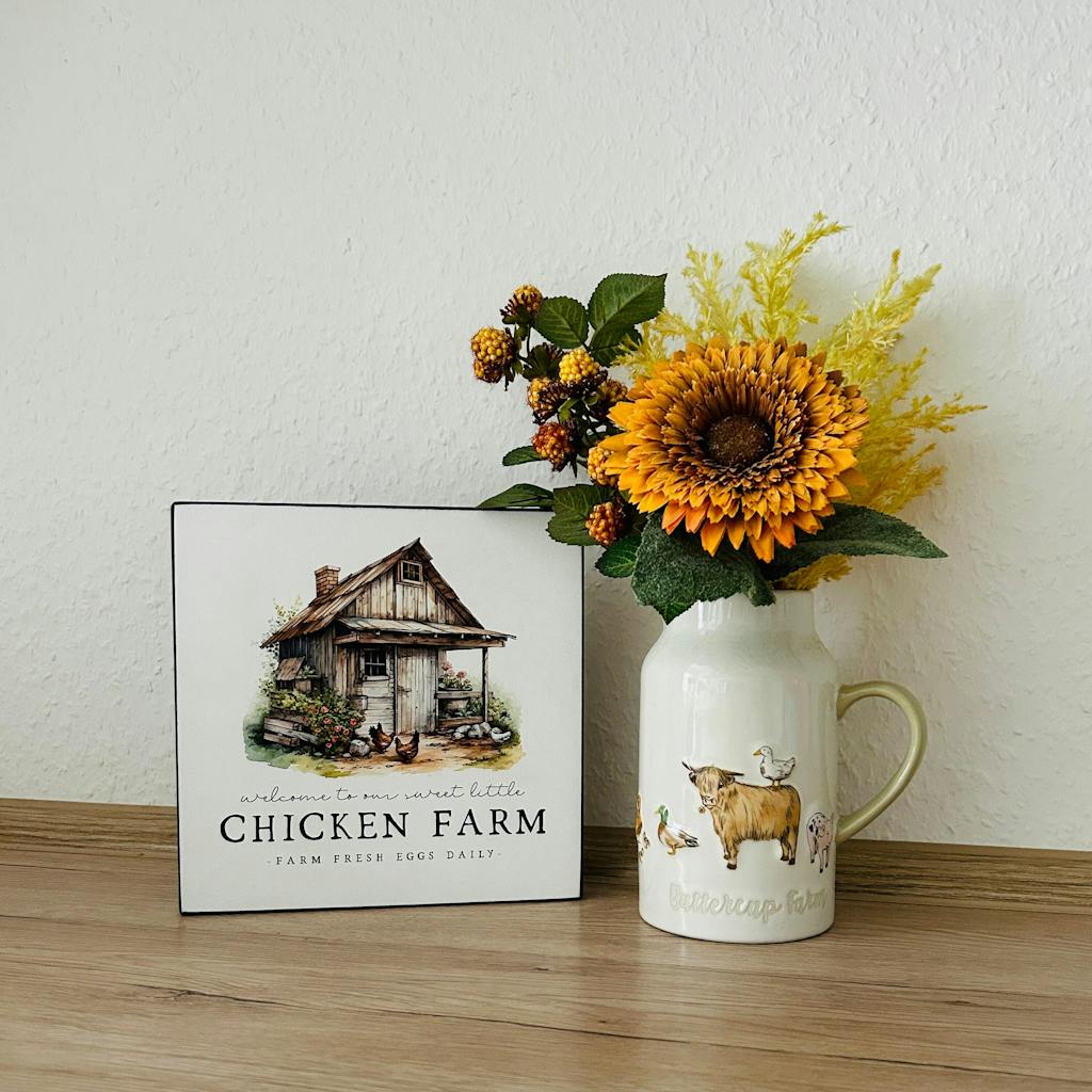 Ob als Geschenk für Hühnerbesitzer und Landliebhaber, als Mitbringsel oder als persönlicher Hingucker – dieser Miniblock verbindet Charme mit Farmhouse-Stil.