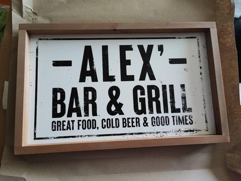 Bitte schreib den Namen genau so, wie du ihn auf deinem Produkt haben möchtest- mit "s" oder ohne, mit Apostroph oder ohne. Wir übernehmen genau das, was du angibst. (Grammatikalisch wird ein Apostroph vor das "s" gesetzt, da es sich auf das "Grill & Bar" bezieht). "Daniel's" nicht "Daniels"