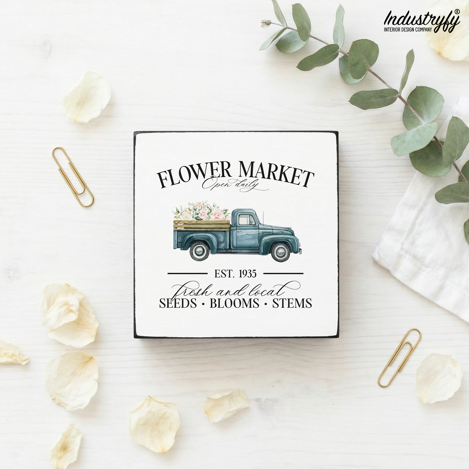 Miniblock Flower Market Truck No4 als Dekoration – Farmhouse Stil von Industryfy