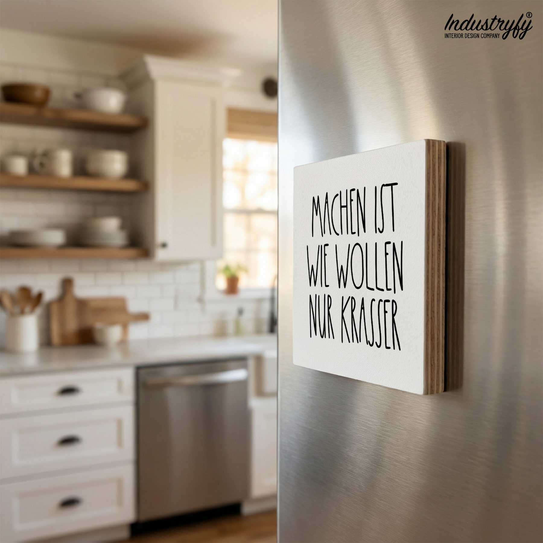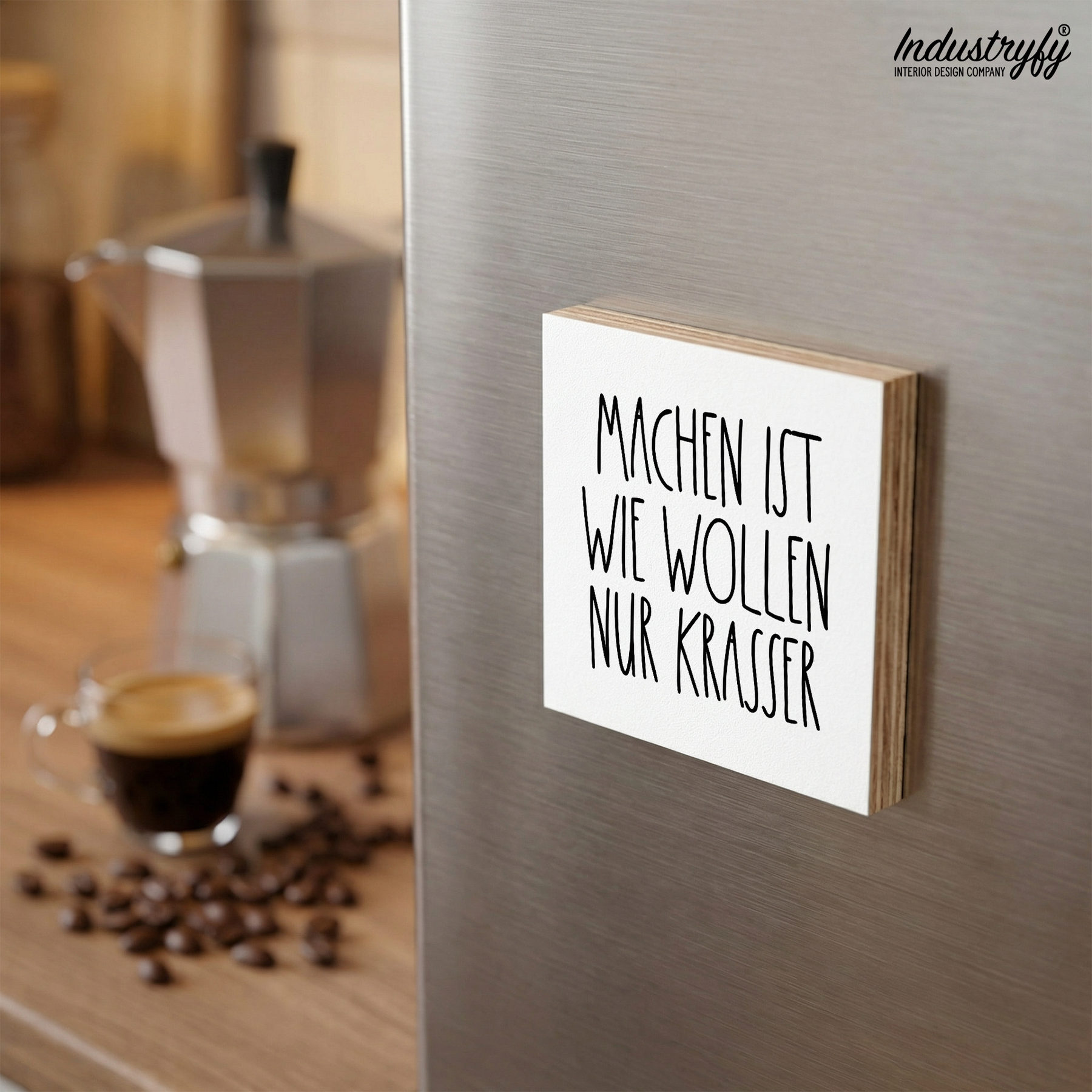 Kühlschrankmagnet aus Holz – "Machen ist wie wollen, nur krasser"