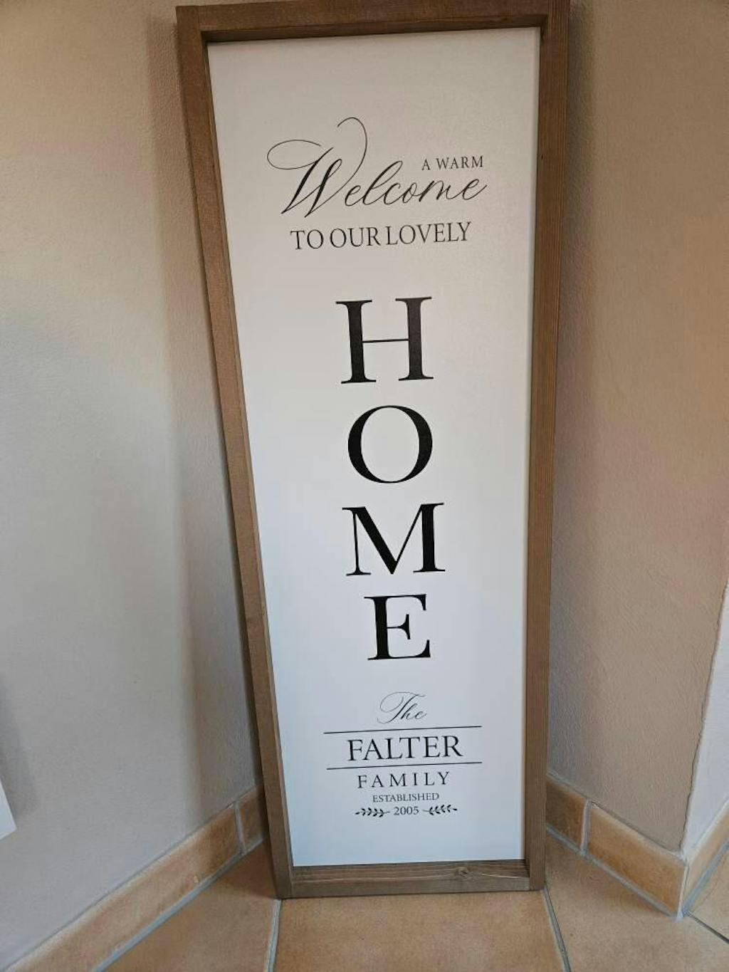 Das Landhaus Schild im amerikanischen Farmhouse Design ist zum hinstellen oder aufhängen an der Wand geeignet. Das Inlay ist austauschbar mit anderen Designs, die hier im Shop einzeln erhältlich sind :) Bei dem Inlay handelt es sich um eine 3mm dicke MDF Platte, die von uns im hochwertigen UV-Druck Verfahren individuell bedruckt und anschließend in unsere selbst hergestellten Rahmen eingeschoben und mit einer Schraube fixiert wird.